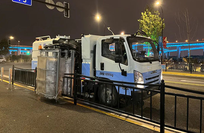 護(hù)欄清洗車配有左右前角噴與大容量清水箱,作業(yè)過(guò)程中對(duì)路面噴水降塵,能夠有效防止路面二次污染。